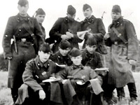 Полевое занятие по тактике. 1 взвод Слева направо: сидят: Корчмарь Л. (отчислен), Юрченко С., Романов А., Меремьянин В.; стоят: Козлов Ю., Плотников В., ?, Талапин В., Демьяненко Ю.